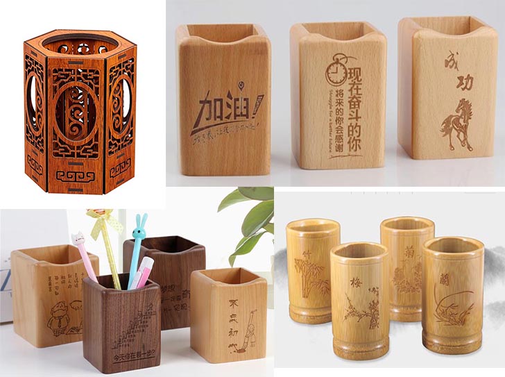 激光雕刻機可以加工任何圓柱體,可帶自動升降平臺。效率高、精度好,不傷害材料本質,雕刻筆筒更純然天成,使書房環境更優雅。