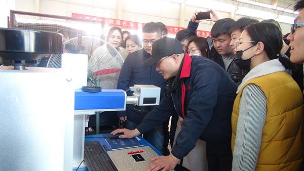 張朋德經(jīng)理為大家演示操作激光打標(biāo)機(jī)