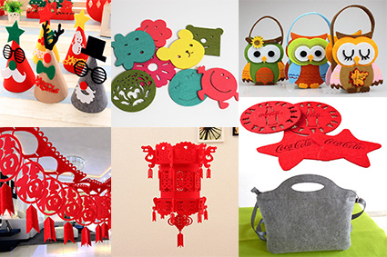 毛氈制品應用行業:婚慶用品(拉花、燈)、工藝品、圣誕用品、手袋、杯墊、地墊、宮燈等制造行業。