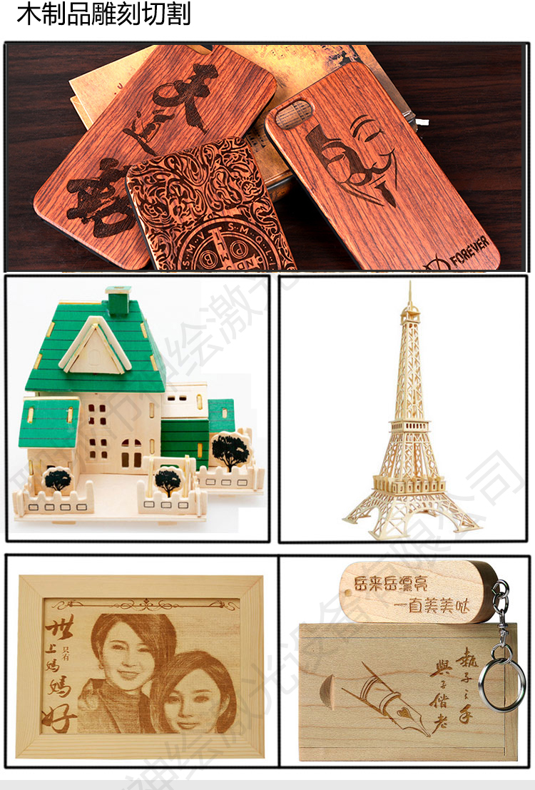 2、適用于小面積的工藝品加工,在雙色板、木板、竹片、有機玻璃、布匹上刻各種各樣的圖形和文字。
