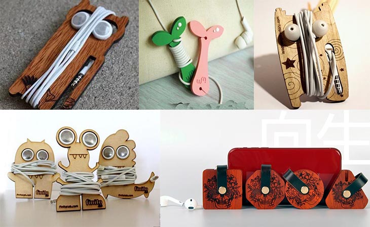 木制纏線器、硅膠纏線器等耳機繞線器激光雕刻樣品圖