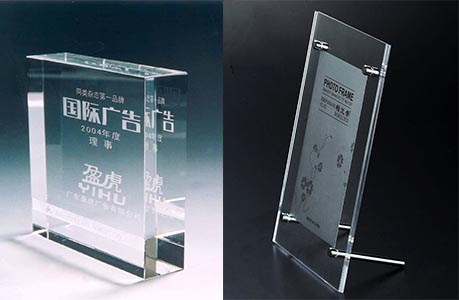 亞克力水晶字很容易被切割和雕刻,有各種各樣的形狀和大小,亞克力有兩種生產工藝:澆鑄和壓延。激光雕刻主要用澆鑄方式生產的有機玻璃,因為它在激光雕刻后產生的霜化效果非常白,與原來透明的質感產生鮮明的對比,壓延方式生產的有機玻璃在激光雕刻后依然是透明的,沒有一個足夠的對比效果。